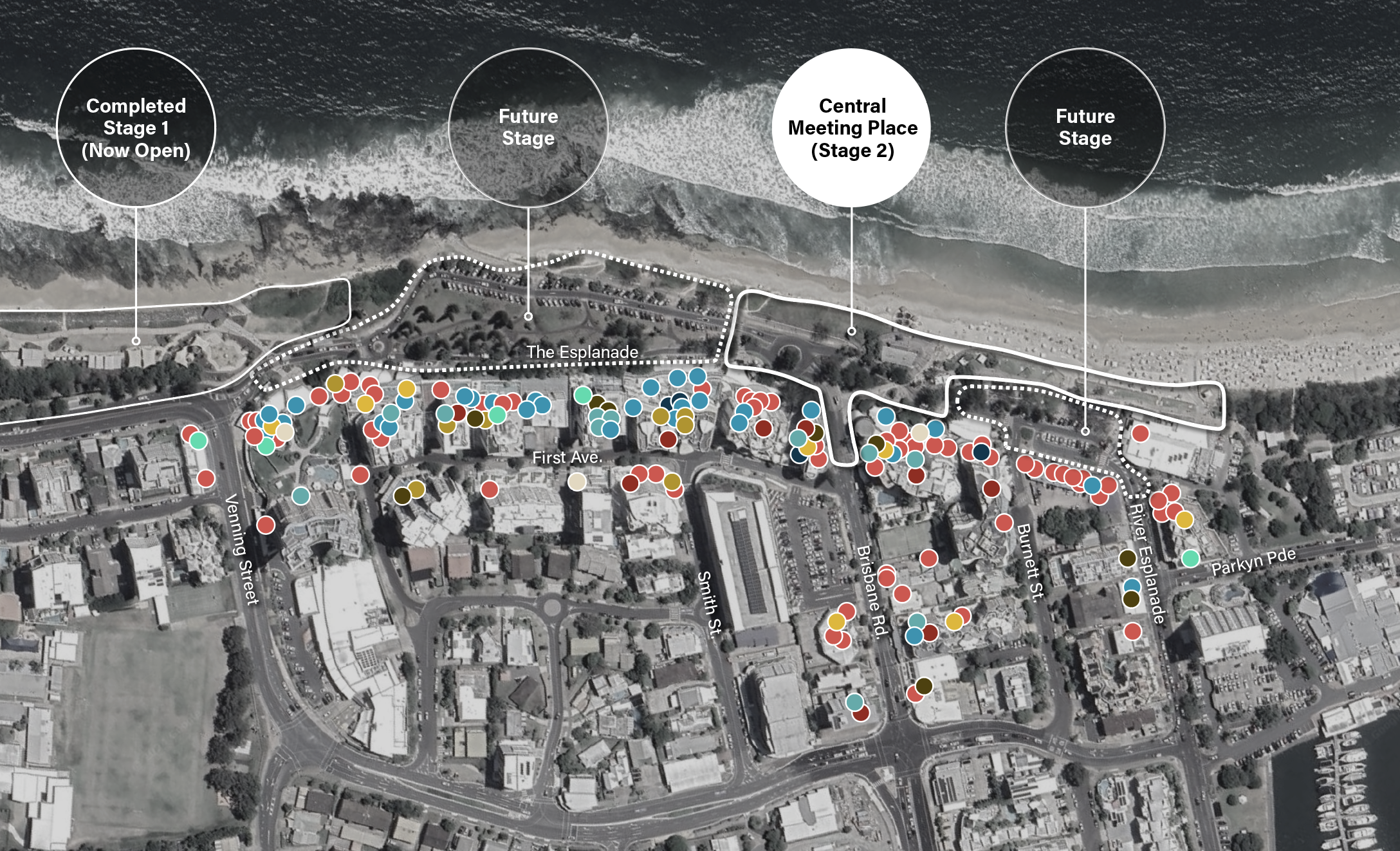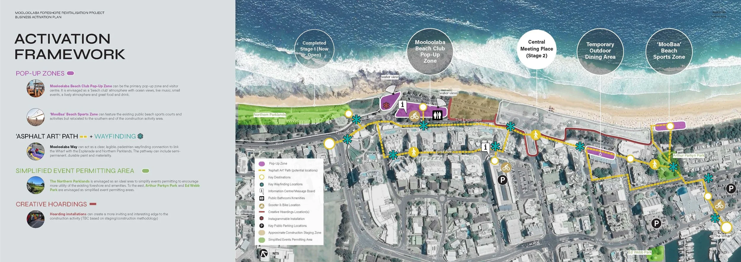 The Activation Framework included event, programming and activation strategies to help counter the construction impact and keep the beachfront vibrant during construction. Additionally, it included operational considerations, physical activation infrastructure, funding strategies, strategies to minimise disruptions throughout the construction process and empower local businesses through ongoing business support and capacity building programs.