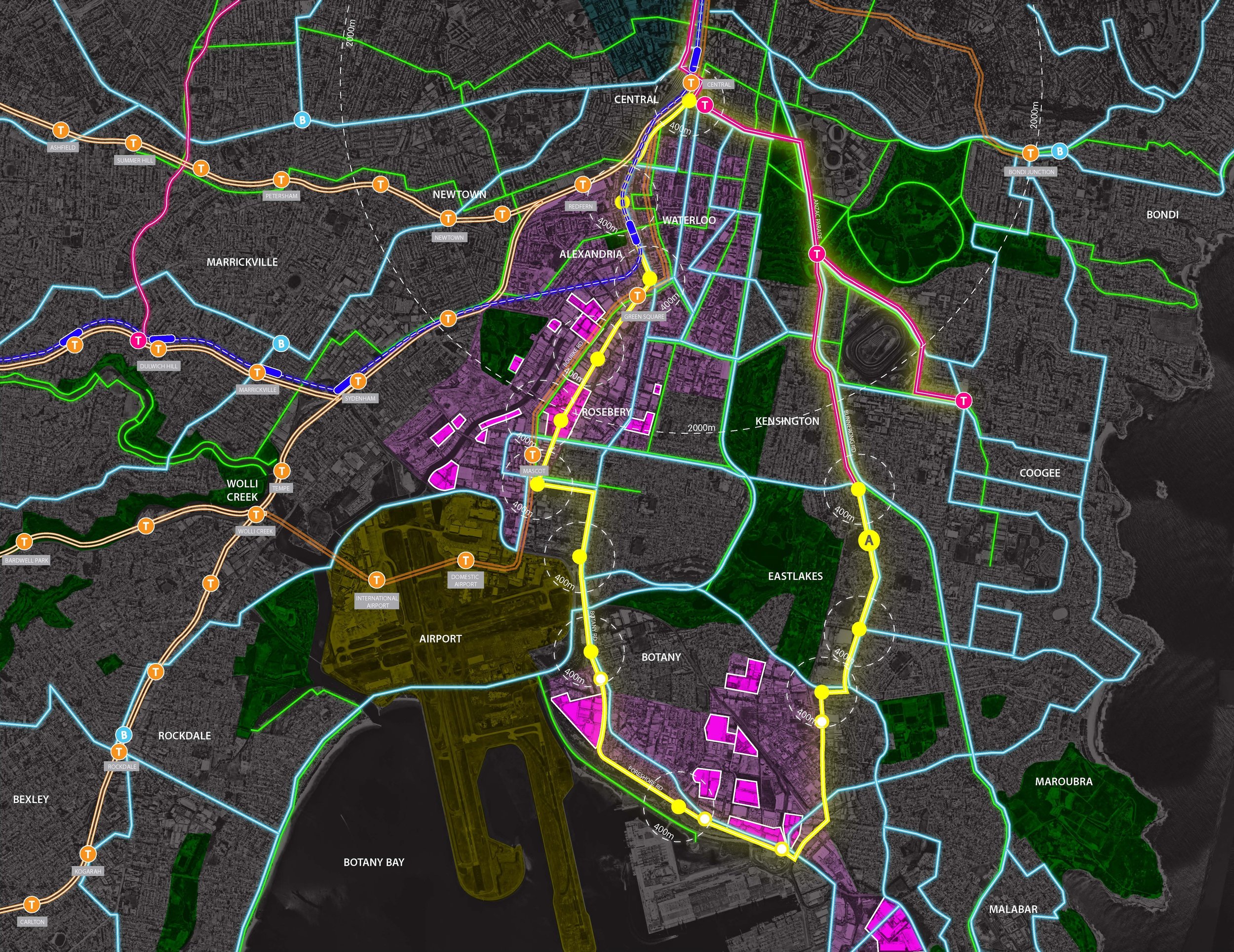 Meck Studio provides urban mobility advisory and design leadership services to government agencies delivering complex transport projects throughout the world. In Sydney, our work with Sydney Metro and Transport for NSW supports the integration of new infrastructure into existing neighbourhoods and greenfields, ensuring mobility upgrades strengthen place outcomes rather than compromise them. We bring a place-led approach to multi-modal planning, aligning walking, cycling, public transport and public domain design into cohesive urban frameworks. We help clients translate technical transport requirements into clear, liveable and future-ready city outcomes.